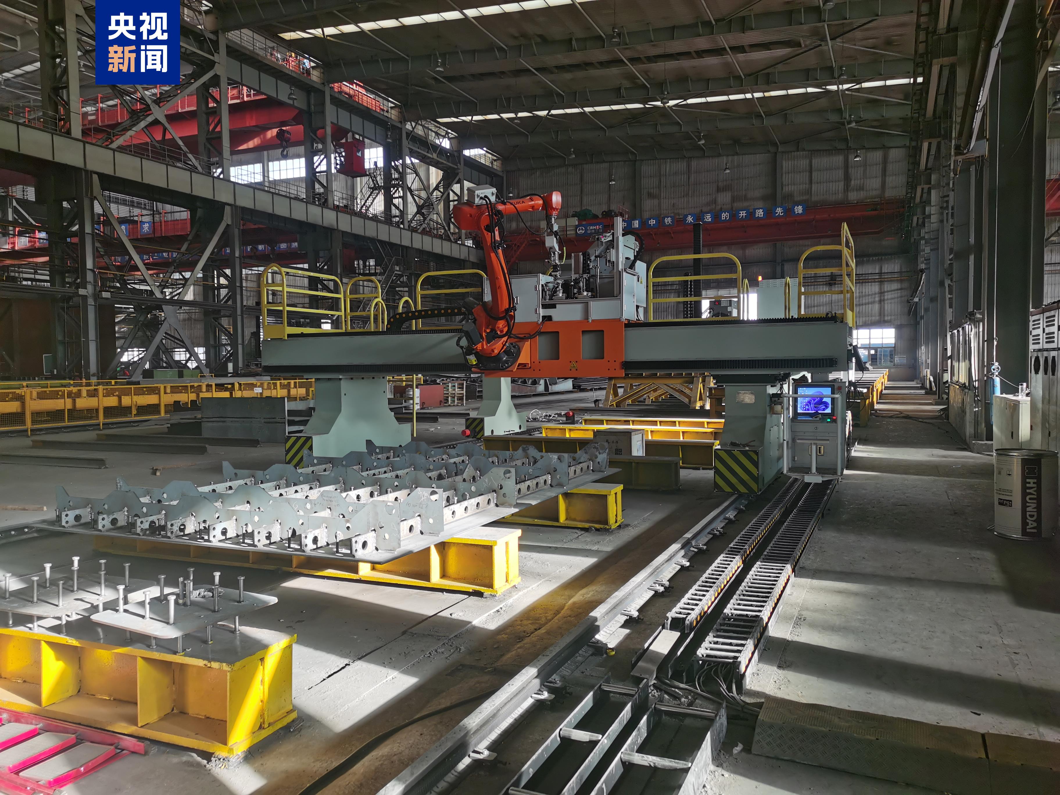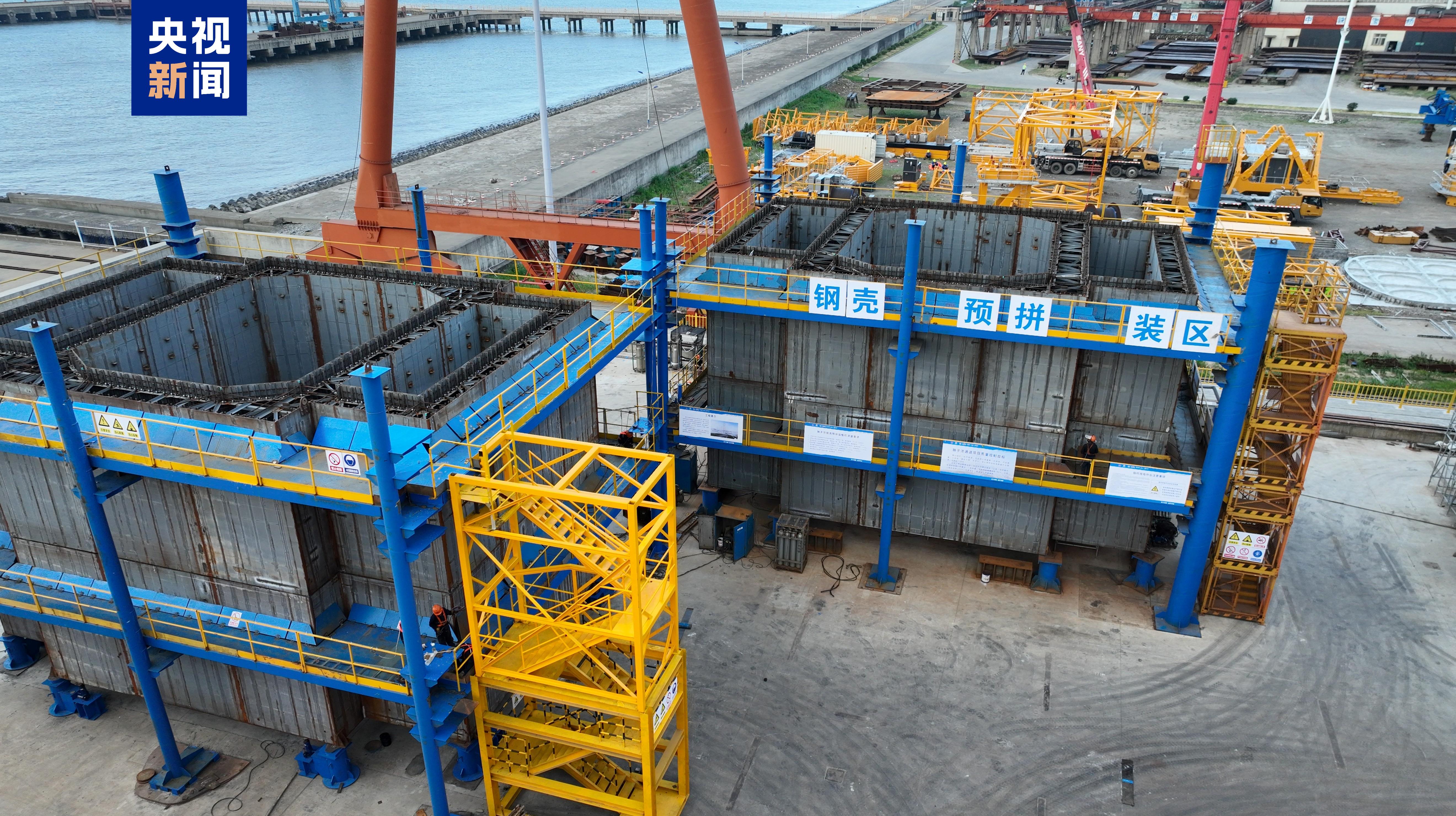△狮子洋年夜桥钢壳节段正在制作厂内乱停止预组装 (总台记者 李伟代 吴媚苗)